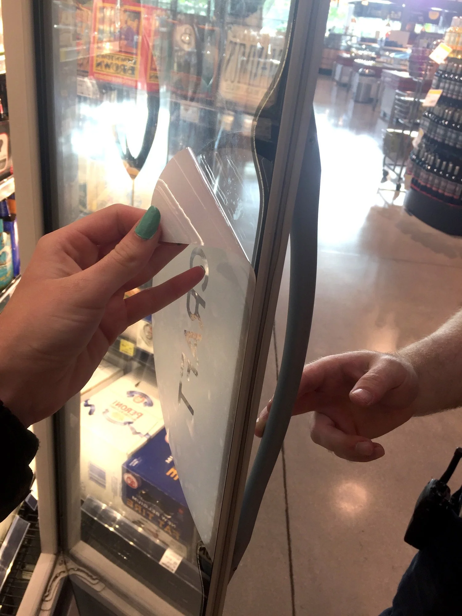 The objective of this assignment was to come up with a way to call out the different varieties of beer in all stores, while not obstructing any product. We ended up going with this half-circle design with a slight opacity and transparent letters. The material is easily moved and applies clean.